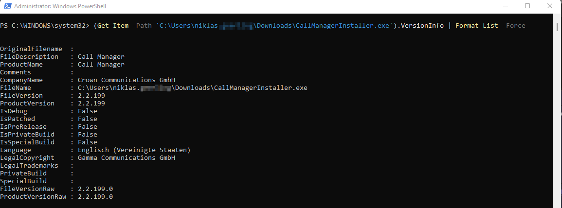 Die Versionsnummer einer ausführbaren .exe-Datei oder eines Installers herauszufinden, geht dies mit folgendem Powershell-Befehl: