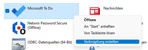 In diesem Ordner befinden sich alle auf dem PC installierten Apps und Programme. Von hier aus kann per Rechtsklick eine Desktop-Verknüpfung für Microsoft Teams, Todo, etc erstellt werden.