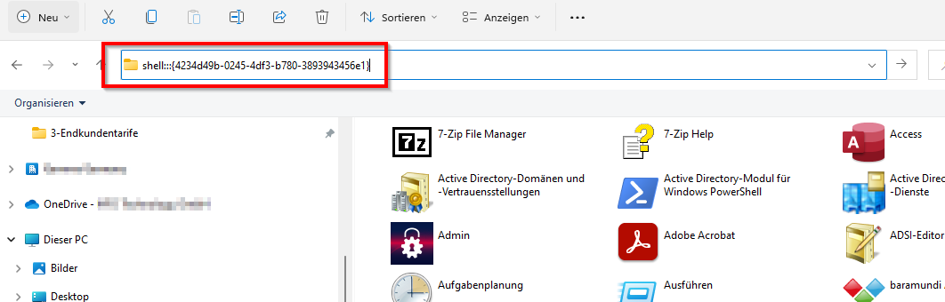 Man öffnet den Datei-Explorer und fügt folgende Zeile in die Adressleiste ein: